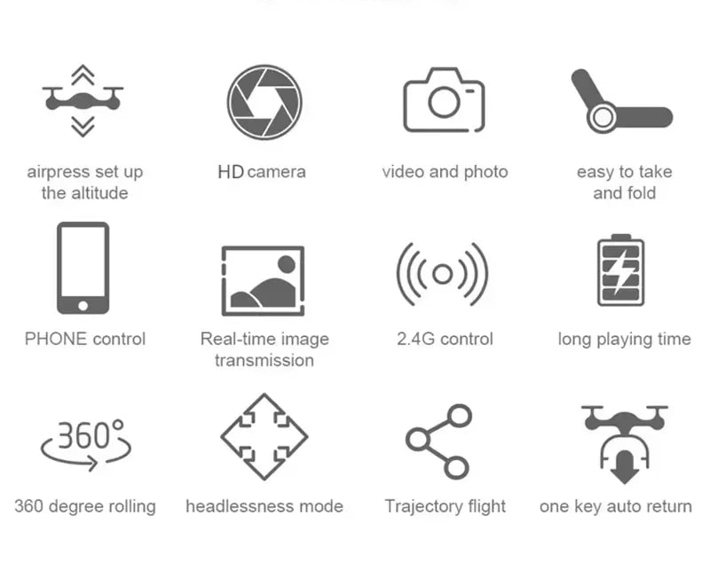 Answer 1: The drone comes with a choice of 1080P or 4K wide-angle HD camera, allowing you to take high-definition pictures and videos. It also includes Wi-Fi connectivity for real-time transmission to your phone.